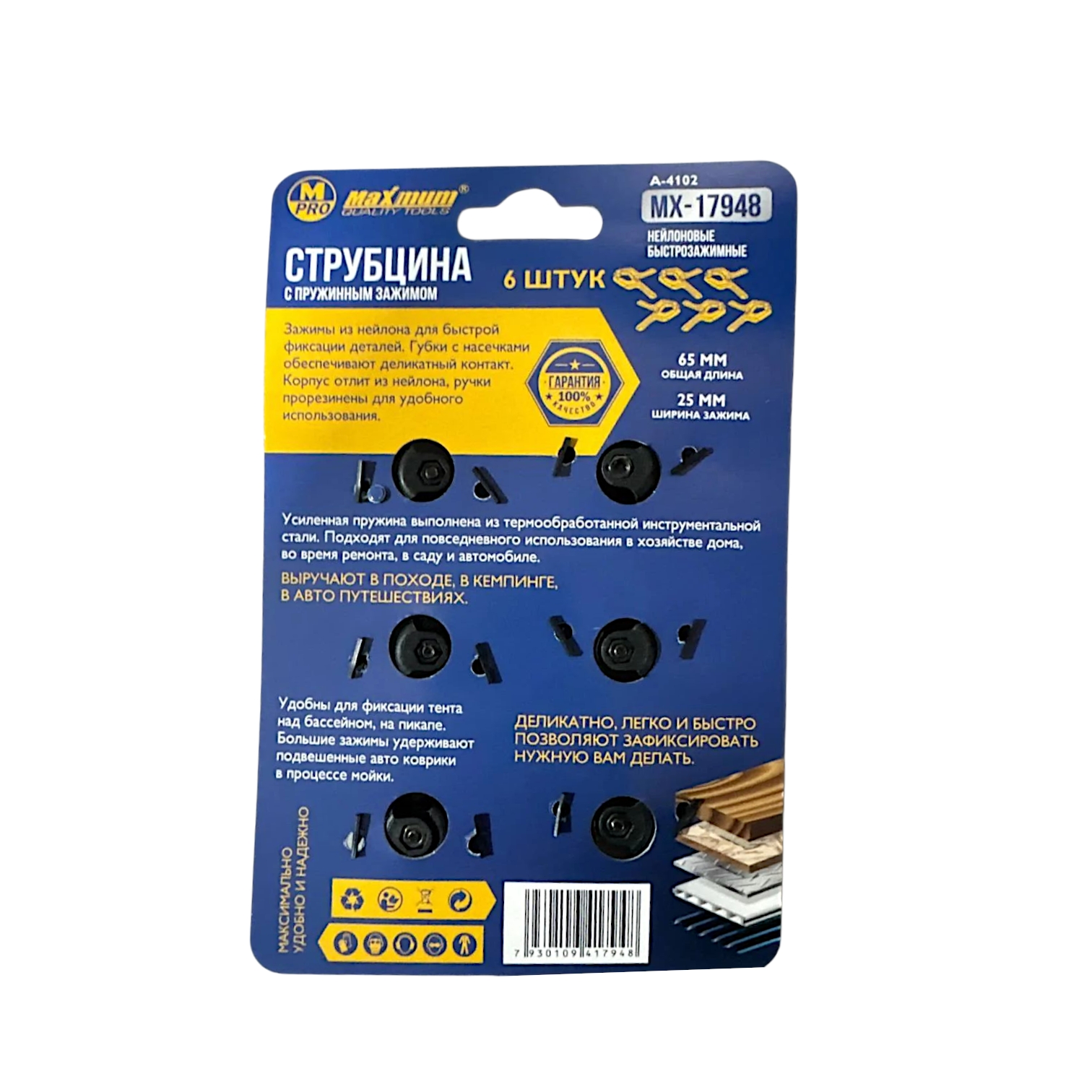 Струбцина автоматическая 100×35 мм, 4", F-образная, с фиксатором и кнопкой сброса, "MAXIMUM" MX18068